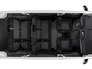 - Dimensiones interiores: 1.515 mm de anchura en las caderas (delante), 1.586 mm de anchura en las caderas (detrás), 1.570 mm de espacio para las caderas en 3ª fila y 61,8